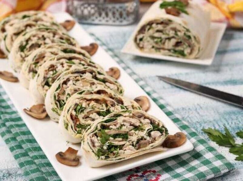 Этот рулет из лаваша с курицей и грибами станет настоящим хитом на вашем столе и порадует гостей своим великолепным вкусом!