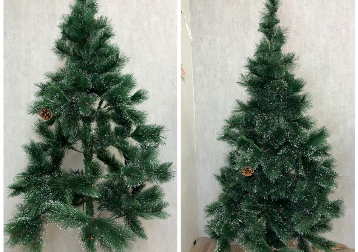 Перед установкой елки лучше всего ее тщательно очистить. Используйте мягкое моющее средство, чтобы удалить пыль и загрязнения. Затем тщательно промойте ветки и дайте им обсохнуть на простыне или обдуйте феном. Если хвоя потеряла свою форму во время хранения, фен поможет вернуть ей объем. В некоторых случаях можно воспользоваться отпаривателем для одежды — это также эффективно распушит веточки.