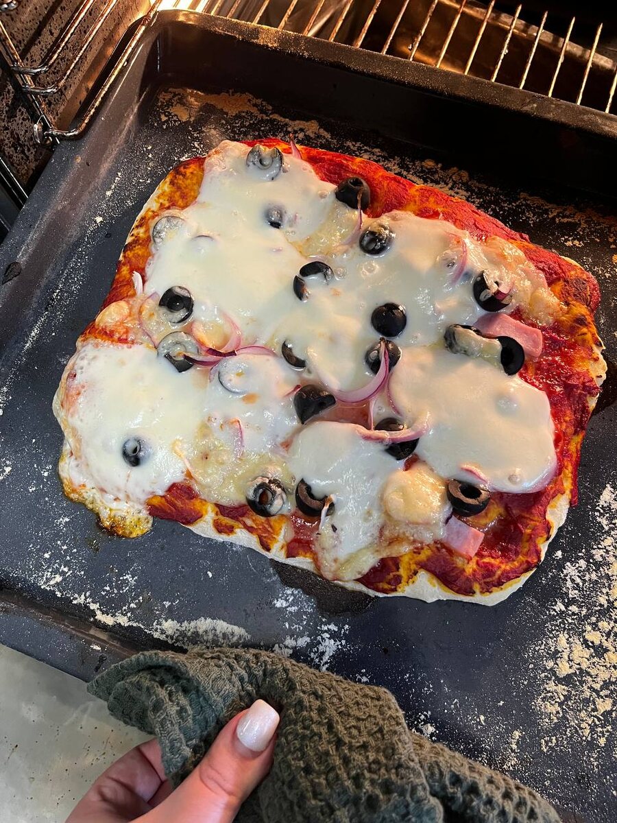 В результате получается тонкая, ароматная пицца, которая станет отличным решением для быстрого и вкусного ужина.