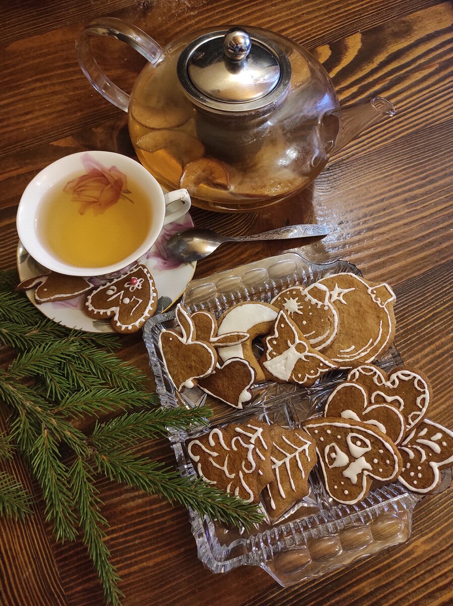 Время приготовления: около 1 часа, с учётом 8 часов для расстойки теста и вечера, посвящённого оформлению пряников.