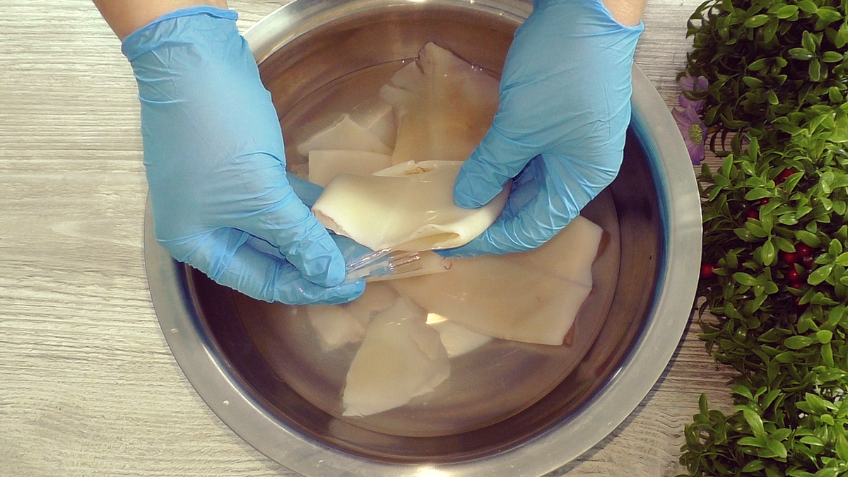 Прежде всего, кальмары необходимо тщательно очистить, извлекая внутренности. После этого их следует хорошо промыть под струей воды, чтобы избавиться от песчинок и пленок.