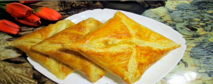 Пеновани с мясом:Приготовьте фарш и заверните его в слоеное тесто в форме треугольников. Выпекайте до золотистой корочки и подавайте горячими.