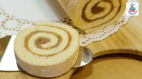 Когда рулет станет слегка теплым, аккуратно разверните его и намажьте повидлом или любым другим кремом. Чтобы бисквит не стал сухим, можно дополнительно пропитать его соком, сиропом или молоком.