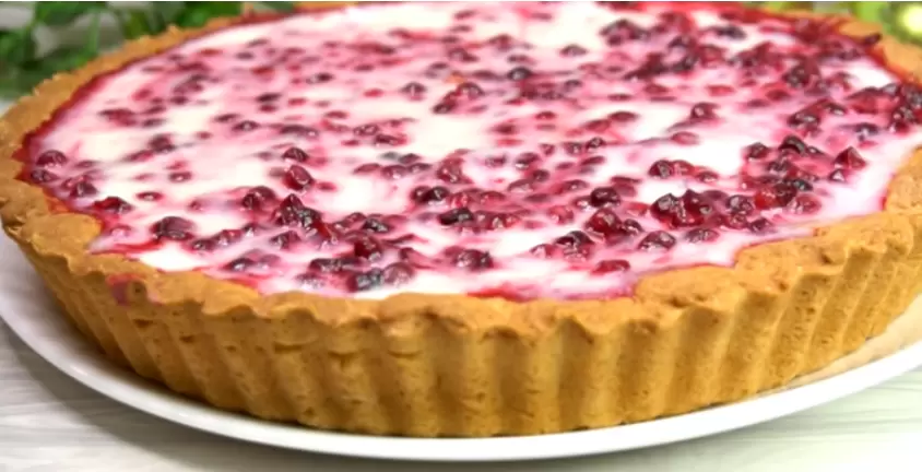Процесс формирования пирога также не требует особых усилий. Возьмите форму диаметром около 26-28 см, смажьте ее маслом и равномерно распределите тесто по всей поверхности. Подготовьте бруснику, добавив к ней крахмал для загустения. Распределите ягоды сверху на тесте и отправьте в разогретую до 180 градусов духовку на 30 минут.