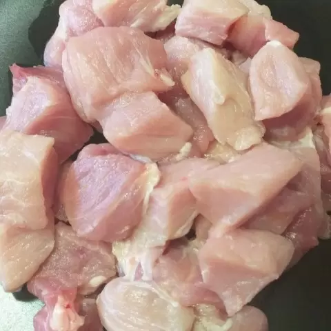 1. Мясо нарезать кубиками среднего размера.