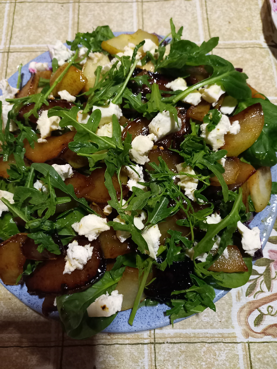 Для подачи выберите красивое блюдо. Начинайте укладывать салат слоями: первым идёт запечённая свекла, затем брынза, полейте всё заправкой. Далее распределите половину зелени, следом аккуратно выложите карамелизированные груши, после чего добавьте оставшуюся зелень и брынзу. Не забудьте полить финальный слой оставшейся заправкой.