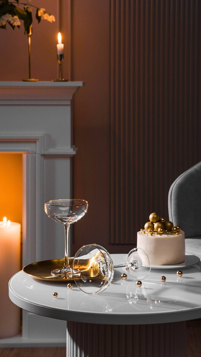 - изящные бокалы-флюте для шампанского.