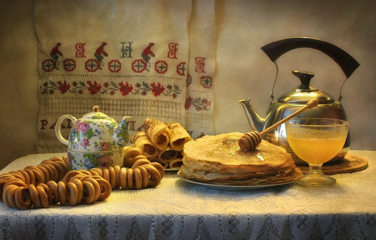 Блины — это главный символ праздника. Их круглая форма и золотистый оттенок символизируют солнце, тепло и пробуждение природы. Существует мнение, что употребление блинов притягивает удачу и благополучие в дом.