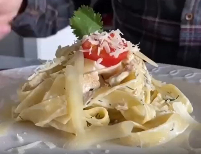 Сытное блюдо: спагетти с курицей и грибами в сливочном соусе