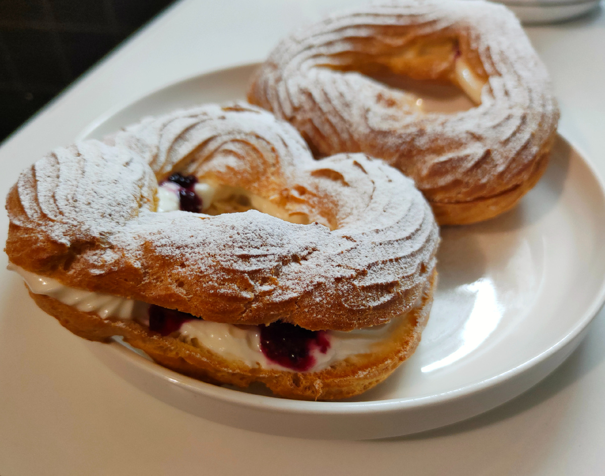 Заварные кольца зарекомендовали себя как любимый десерт для многих. В этом рецепте к традиционному лакомству добавляется творожная начинка без масла и жирных сливок, что делает угощение менее калорийным, но не менее вкусным. Особенно актуально это блюдо подготовить к празднику, презентовав его в форме сердечек.