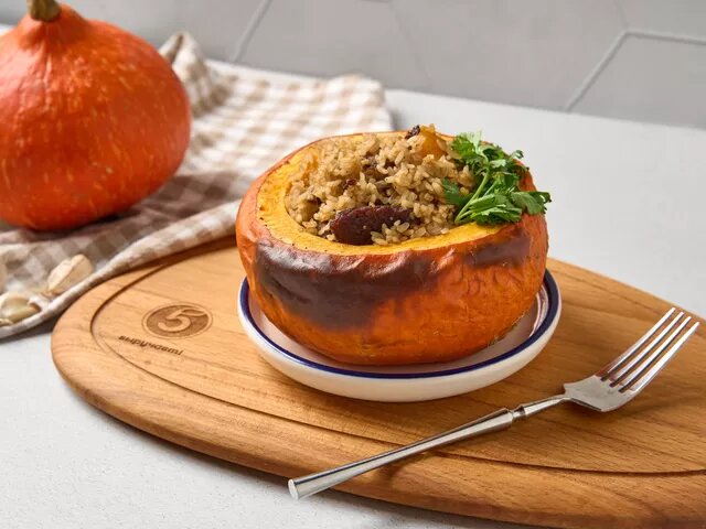 Этот кулинарный опыт превратит обычный ужин в настоящее событие. Представьте себе: вы аккуратно разрезаете тыкву, вычищаете семена и наполняете её ароматным рисом с мясом, специями и сухофруктами, затем запекаете. Когда тыква выходит из духовки, преображенная и золотистая, гости замирают от восхищения. При разрезании вас ждет момент кулинарного восторга — нежный рис, пропитанный соками тыквы и мяса.