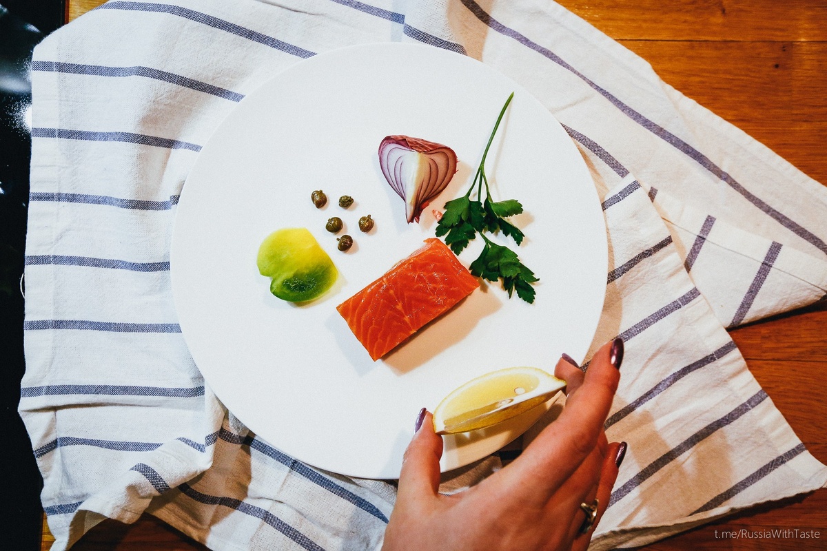 - Свежая сёмга или форель (возможна замена на кету или кижуч в масле для копчённого варианта)