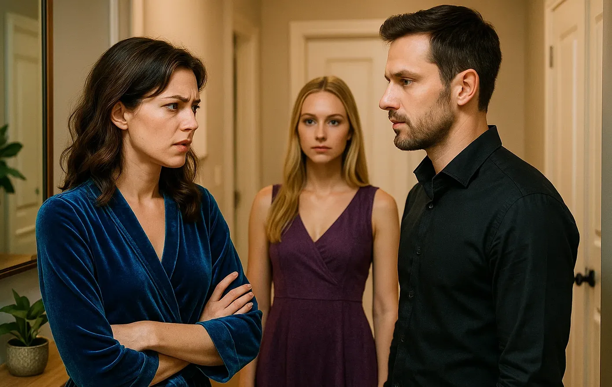В маленькой прихожей разразилась настоящая драма. Муж, в доме которого неожиданно появилась незнакомая женщина, с ухмылкой представил её как «коллегу». В тусклом свете она выглядела так, будто попыталась создать эффект небрежной легкости, но в этом было что-то уж слишком натянутое.