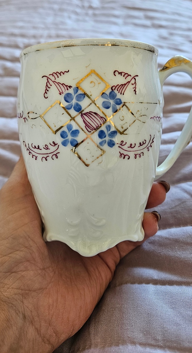 Чашка, рассматриваемая сегодня, является чувствительным связующим звеном с историей. Несмотря на следы использования, такие как потёртый рисунок и стертая позолота, форма сохранена в идеальном состоянии. Эта модель напоминает хорошо известный советский сервиз "Барбарис", который стал любимым среди пользователей благодаря своему утонченному дизайну и разнообразным вариантам декора.