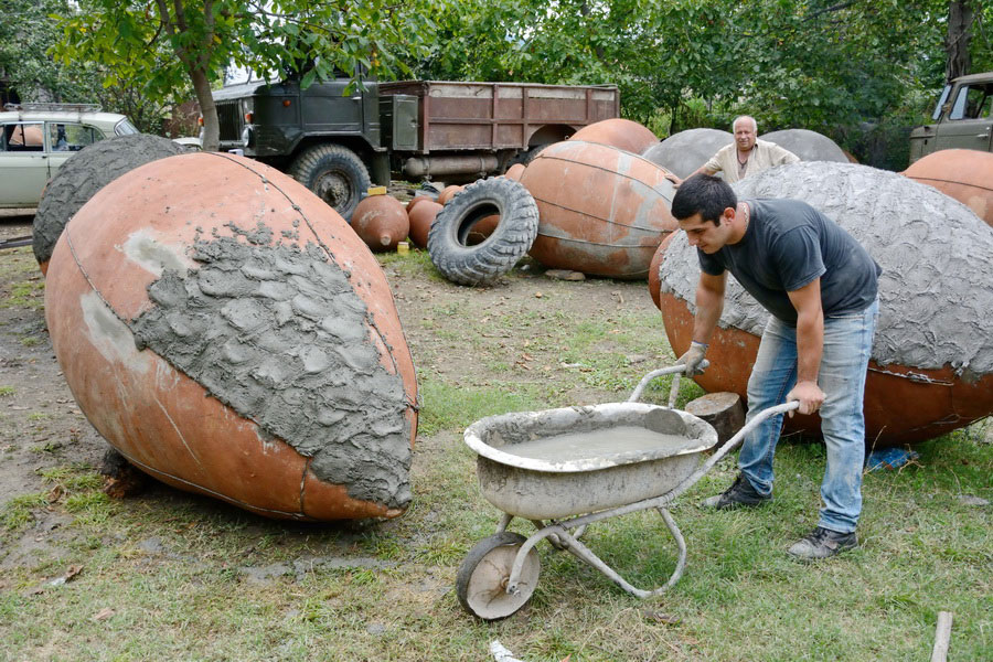 Одной из самых ответственных задач для винодела является мытье квеври. Этот процесс требует высокой квалификации и немалой смелости. После того как вино будет разлито, необходим человек, готовый спуститься в этот огромный сосуд.
