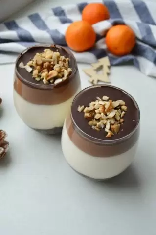 Сначала шоколадное печенье и грецкие орехи тщательно измельчаются в крошку. Затем к ним добавляется мягкое сливочное масло, и все тщательно перемешивается до однородной консистенции.Полученную массу укладывают в форму, утрамбовывают и ставят в холодильник на 20 минут, чтобы основа застыла.Взбиваются холодные сливки до крепких пиков, начиная с низкой скорости и постепенно ее увеличивая. Затем взбитые сливки делят пополам.Белый шоколад растапливается и постепенно вводится в одну из частей сливок, тщательно перемешивается, можно использовать блендер для облегчения этой задачи.Смесь выливают на подготовленную основу и вновь помещают в холодильник.После этого аналогичным образом растапливают и добавляют молочный шоколад во вторую часть сливок, а потом выливают на белый слой.Необходимо оставить десерт в холодильнике на несколько часов, чтобы он полностью застыл.На последнем этапе растапливается темный шоколад, который аккуратно выливается сверху, а для украшения посыпается рублеными орехами. Дадут десерту время застыть в холодильнике еще на 20 минут.Таким образом, полученный десерт окажется не только вкусным, но и поистине красивым! Он способен стать звездой любого праздничного стола, а также быстро поднять настроение.