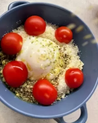 При готовке этого блюда ясность и вдохновение приходят постепенно, поэтому важно просто делать — создавать что-то новое. Основной ингредиент здесь — яйцо, которое можно готовить практически как пашот. При разрезе желток будет нежно растекаться, создавая аппетитное сочетание с крупой.