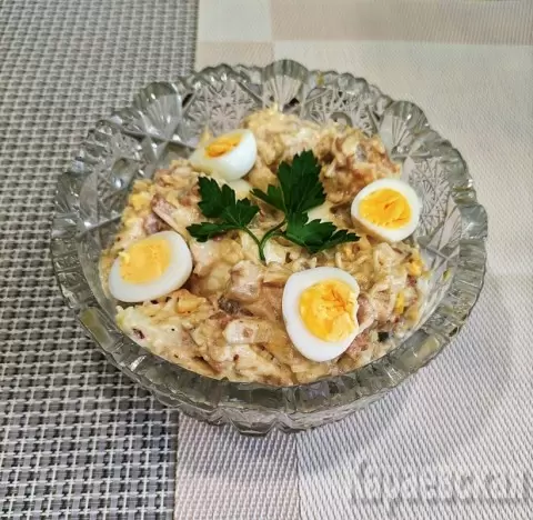 Один из лучших рецептов: салат из печени трески с перепелиными яйцами
