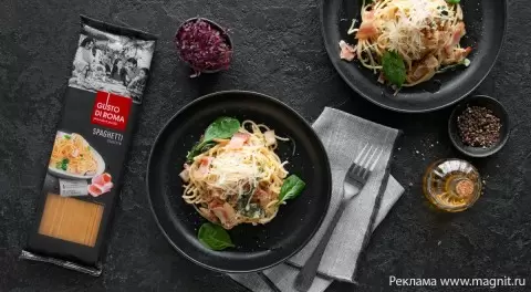 Для создания соуса, тщательно прогрейте сметану со шпинатом до мягкости и нежности. Добавьте туда отваренные до состояния аль денте спагетти, обильно посыпьте тертым твердым сыром, свежим зелёным луком и кусочками ранее приготовленного бекона. Этот эстетически привлекательный и вкусный десерт украсит ваши семейные ужины!