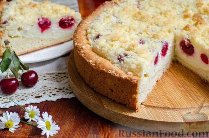- Песочный пирог с творожной начинкой и вишней: Нежный, ароматный и прост в приготовлении, этот пирог приятно удивит своим вкусом и станет отличным завершением летнего обеда.